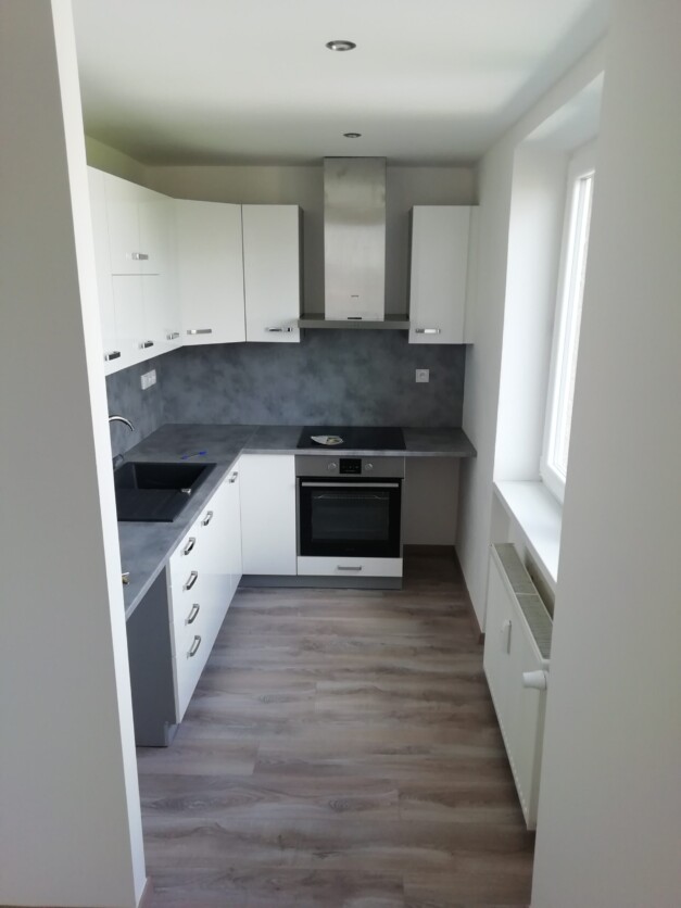 Investor se rozhodl pro výměnu kuchyňské linky a při té příležitosti se provedla rekonstrukce celé mísnosti