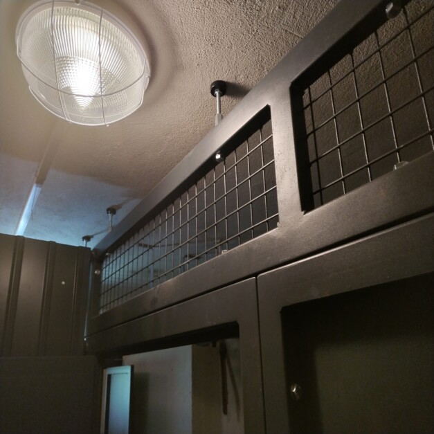 Společenství vlastníků v bytovém domě zadalo zakázku na výrobu sklepních kójí do již nevyužívaných prostor sušárny a prádelny. Jedná se o zakázkovou výrobu 5 kojí. Kóje jsou v barvě antracit, z materiálu o síle 2,5mm kvůli pevnosti, odolnosti a absence prahu z důvodu parkování kol. Součástí výroby byla i montáž s úpravou elektroinstalace.